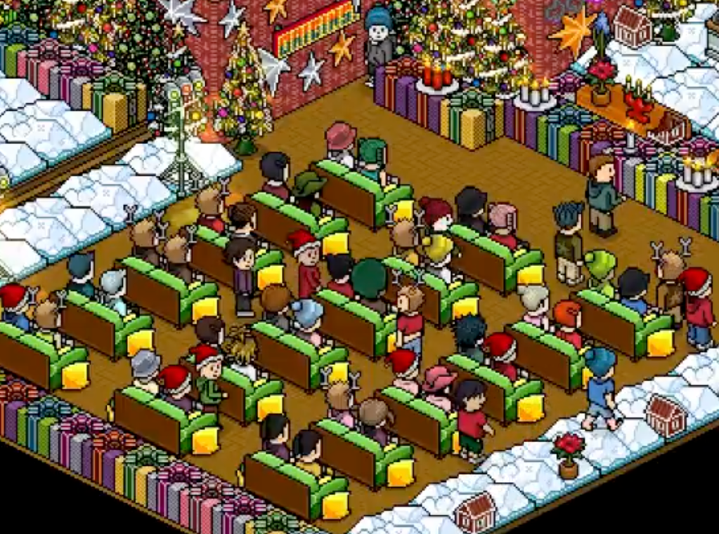 On Saturday past, the ever-fabulous Sparkles hosted a yuletide soirée that will be the talk of Habbo for seasons to come. Guests arrived draped in their finest pixels – sequins, snowflakes and a veritable parade of winter haute couture.